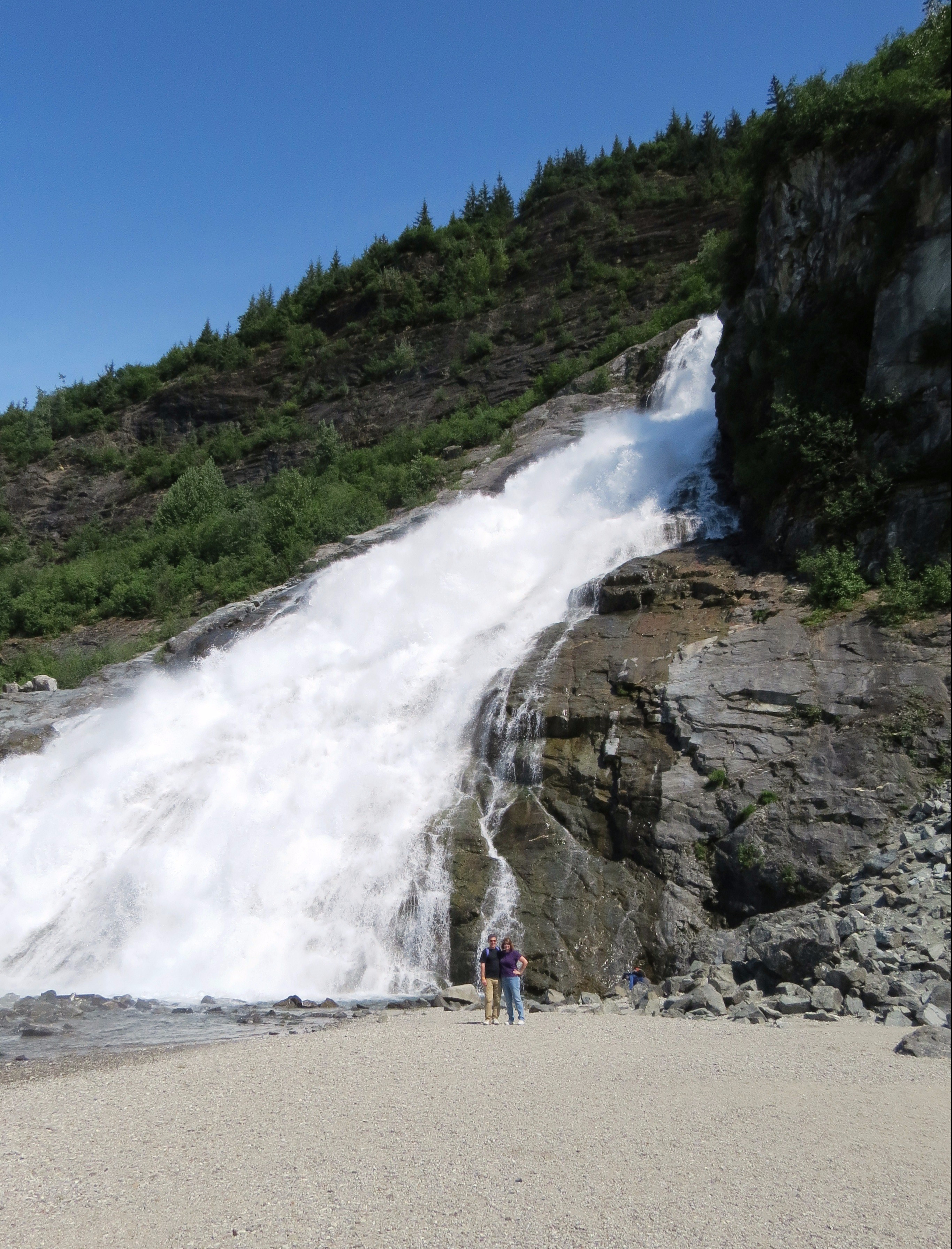 075 Mar13 Published at 2731 × 3584 in Mendenhall Glacier ← Previous Next → David and Susan at the base of Nugget Falls