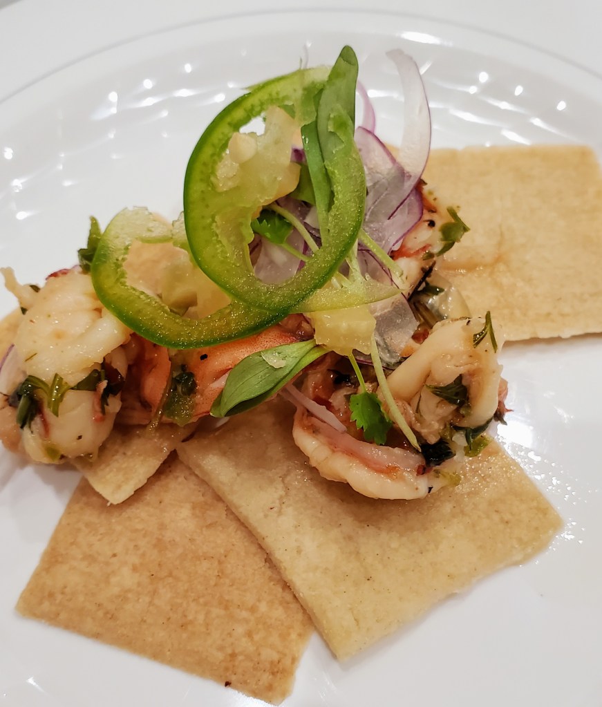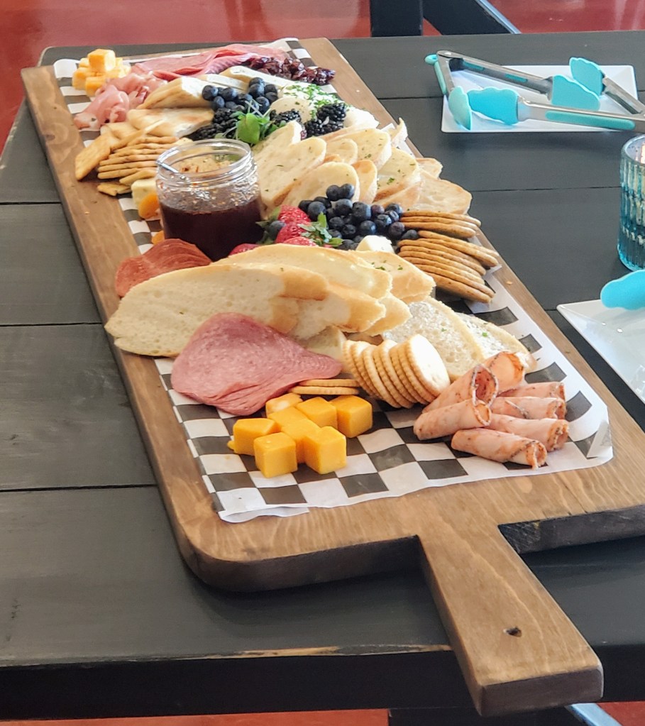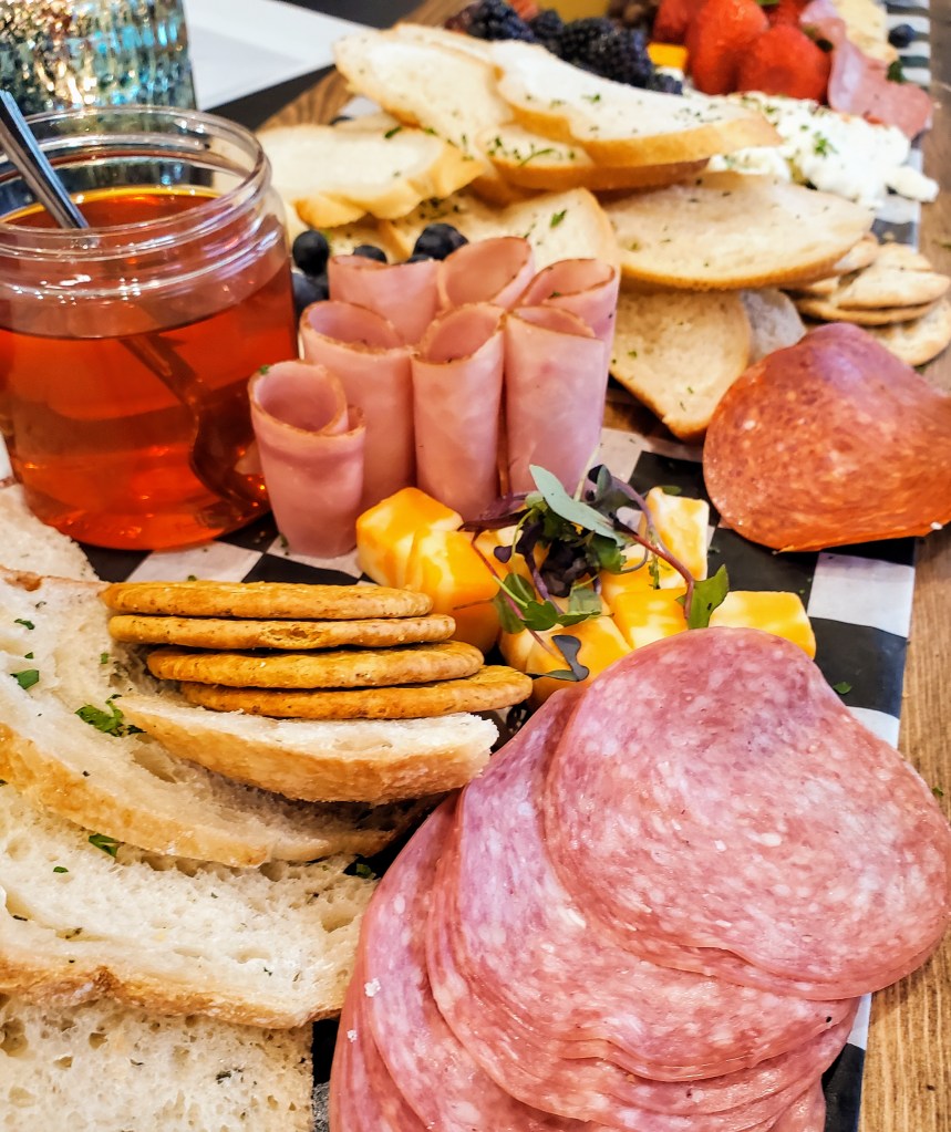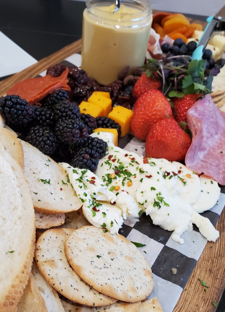 After each couple in the class had made the assigned cheeses, we were treated to a Wine and Cheese Tasting! In a small room off the kitchen, there were pre-made plates of The Mozzarella Company’s specialty award-winning, fresh and aged cheeses along with some breads and wines. This cheese plate was delicious! We tried Queso Menonina, Queso Blanco, Hoja Santa (wrapped in a leaf that gives it a mint & sassafras taste), Herb Goat Cheese Log, Deep Ellum Blue (a favorite, for sure!), Dolce Habanero (apricot & habanero…hot!) and Caciotta la Cocina (with all types of colorful herbs from “the kitchen”) and several other types that I have forgotten. At this point of the evening, I was busy stuffing my mouth with delicious cheese samples and not paying attention to our instructor. What a fun and enjoyable experience this had been!