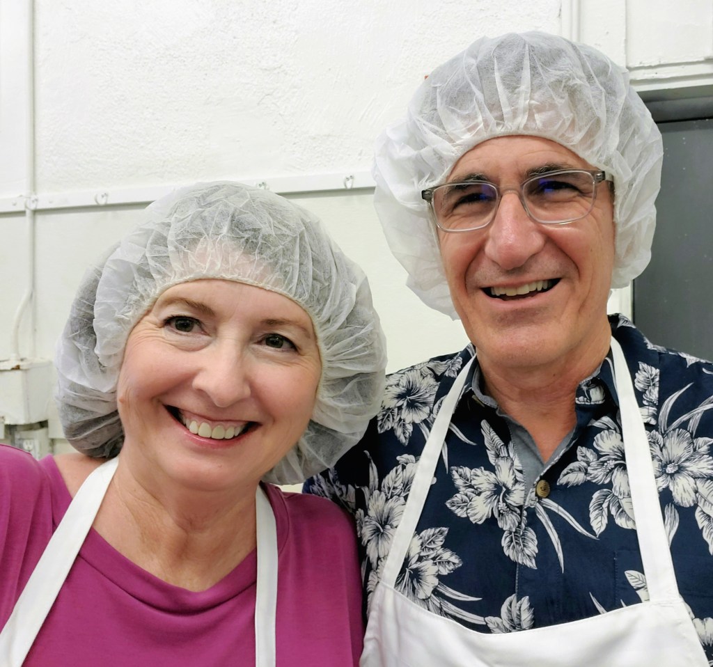 My husband and I took this class along with friends a couple of weeks ago to help celebrate my husband’s birthday. We donned our “closed toe shoes,” arrived at our assigned time and were given aprons and lovely hairnets. After snapping a few selfies of our “lunch lady” look, phones were put away, hands were washed, and instructions were given.