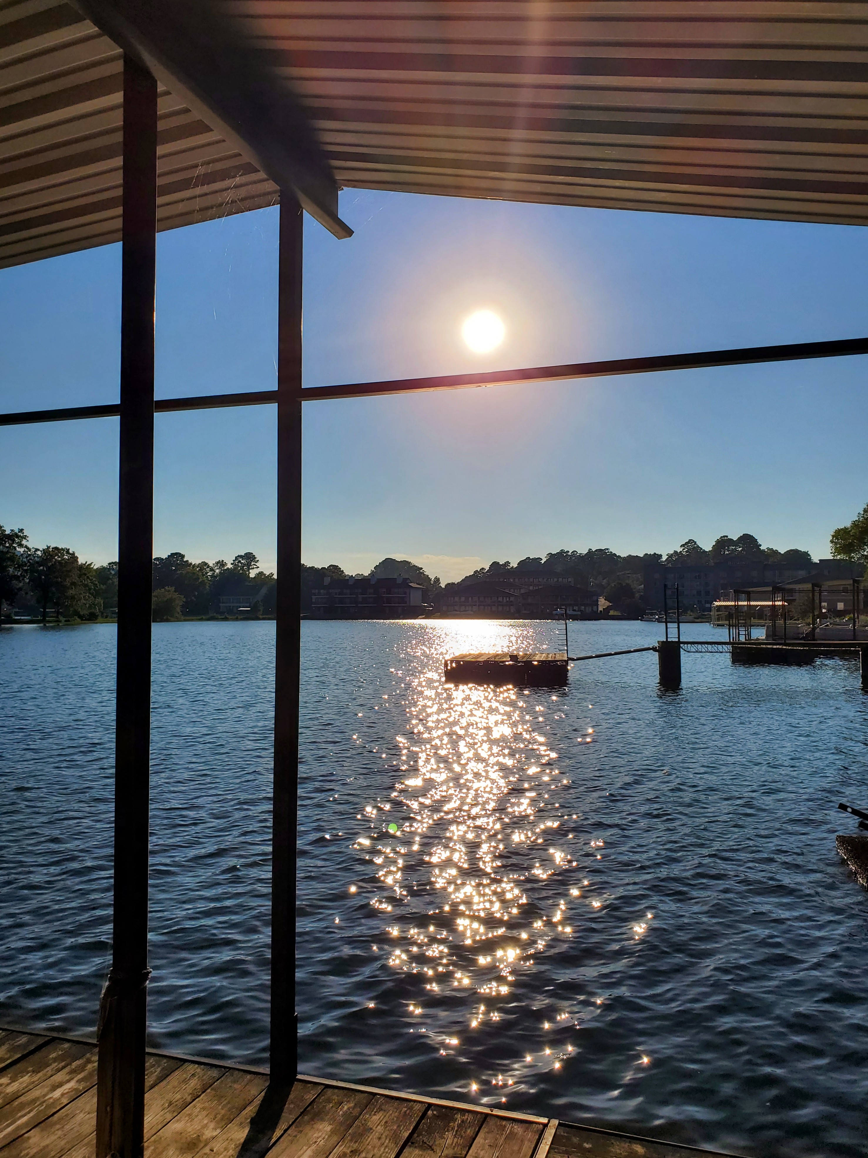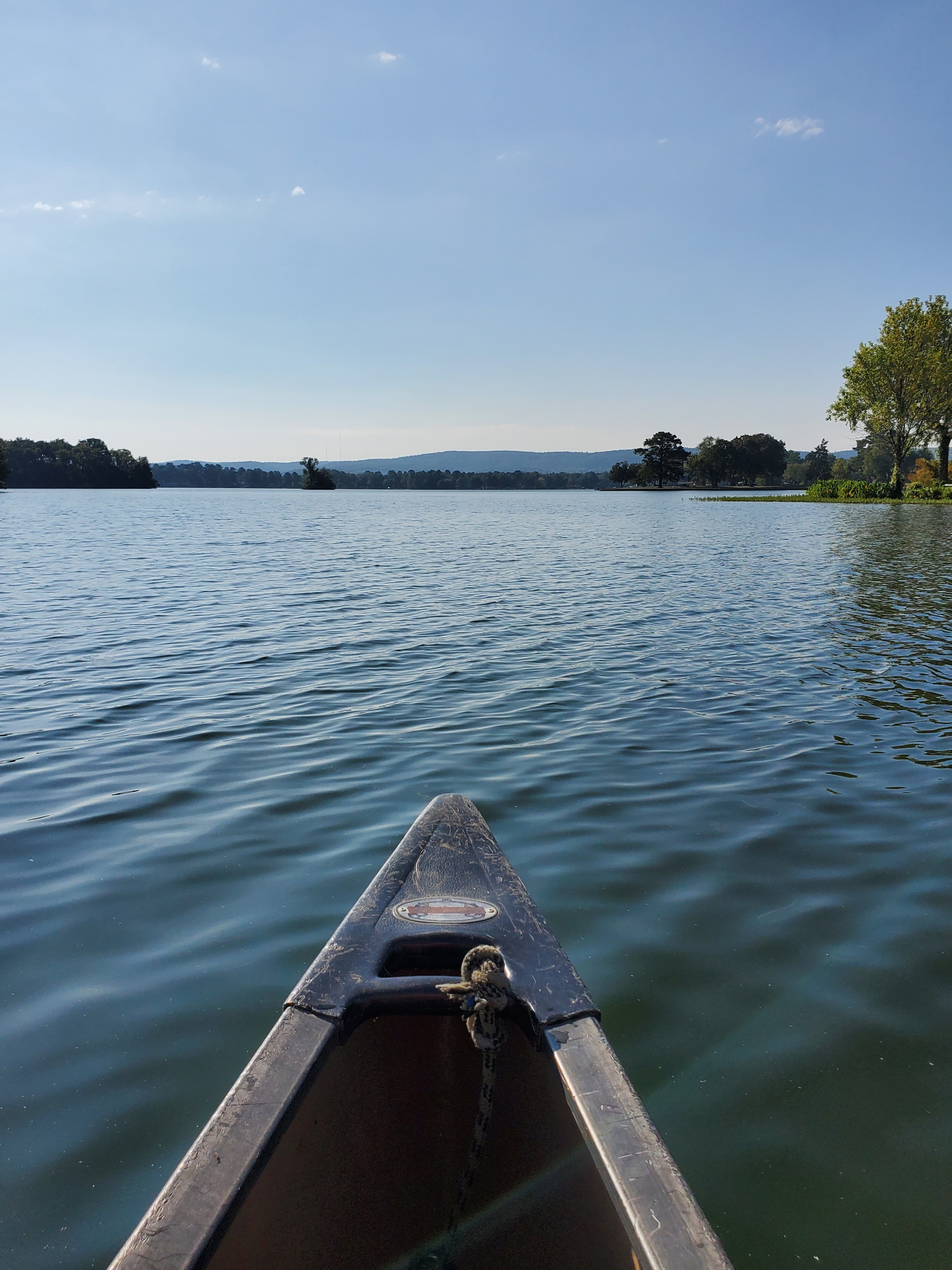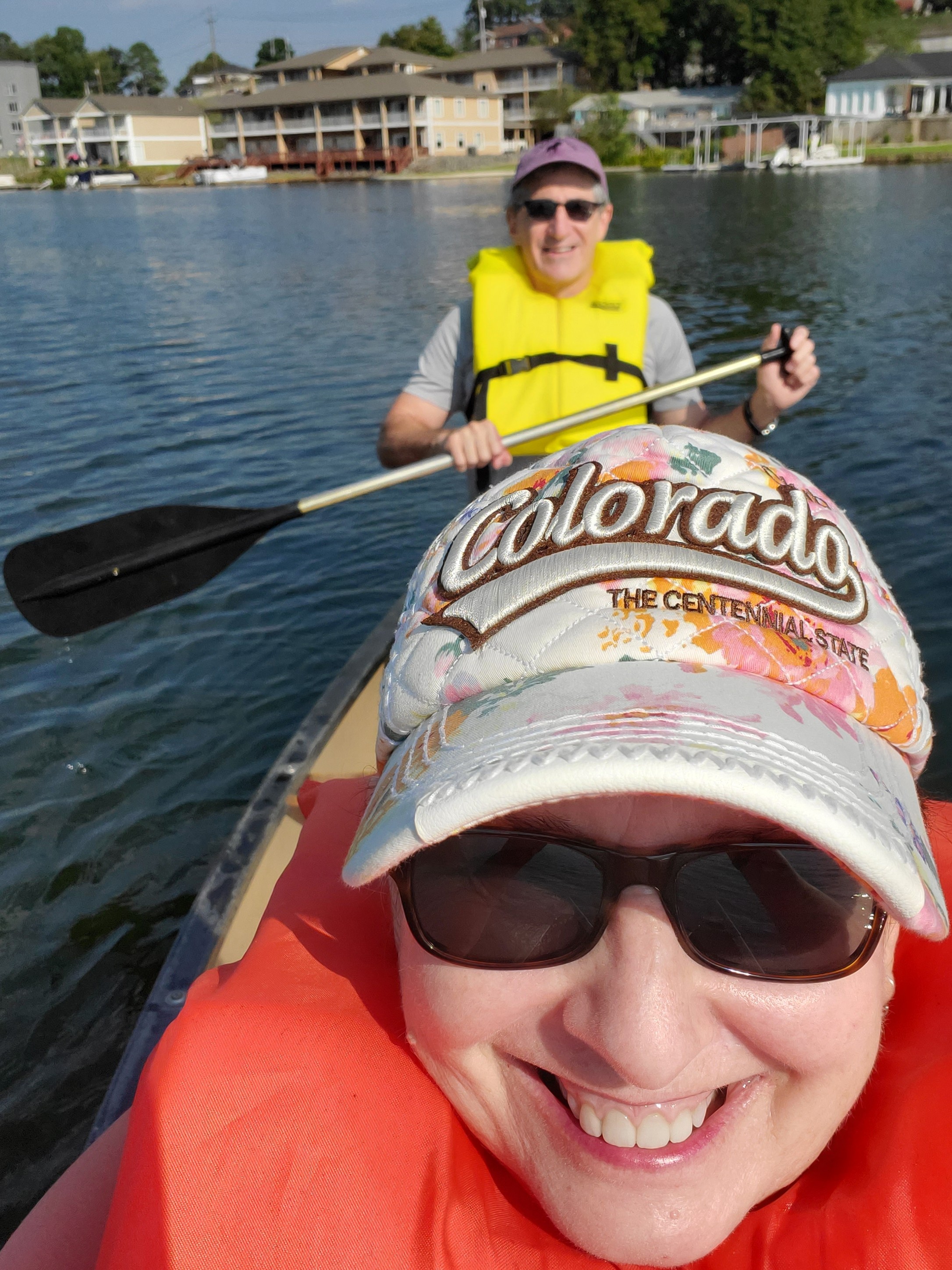 Day Two – we decided to beat the heat, get an early start and canoe from our inn’s dock on Lake Hamilton. After another wonderful breakfast, we grabbed lifejackets, paddles and loaded up in a canoe. It was a beautiful day and the water was clear and calm. We explored the part of the lake and small islands scattered just off the shore from our inn. It was fun!
