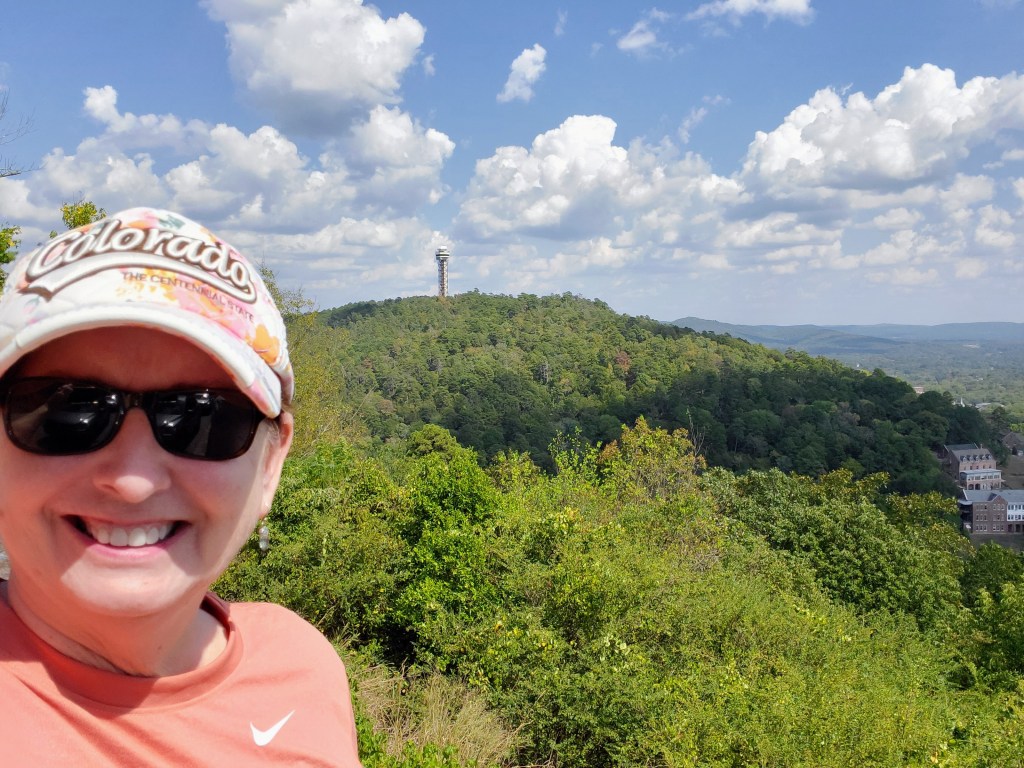 After lunch, we continued touring the park and drove up the winding Mountain Tower Road and West Mountain Road. Both drives provided scenic forested drives and great mountain lookouts. We had clear, beautiful views of Hot Springs and the Ouachita Mountains. For the more adventurous, there are almost 30 miles of hiking trails within the park boundaries that wind up, down and around these mountains overlooking the city. We decided to bypass hiking this time and just enjoyed the scenery from the comfort of our air-conditioned car (it was a humid 97 degrees in late September!).
