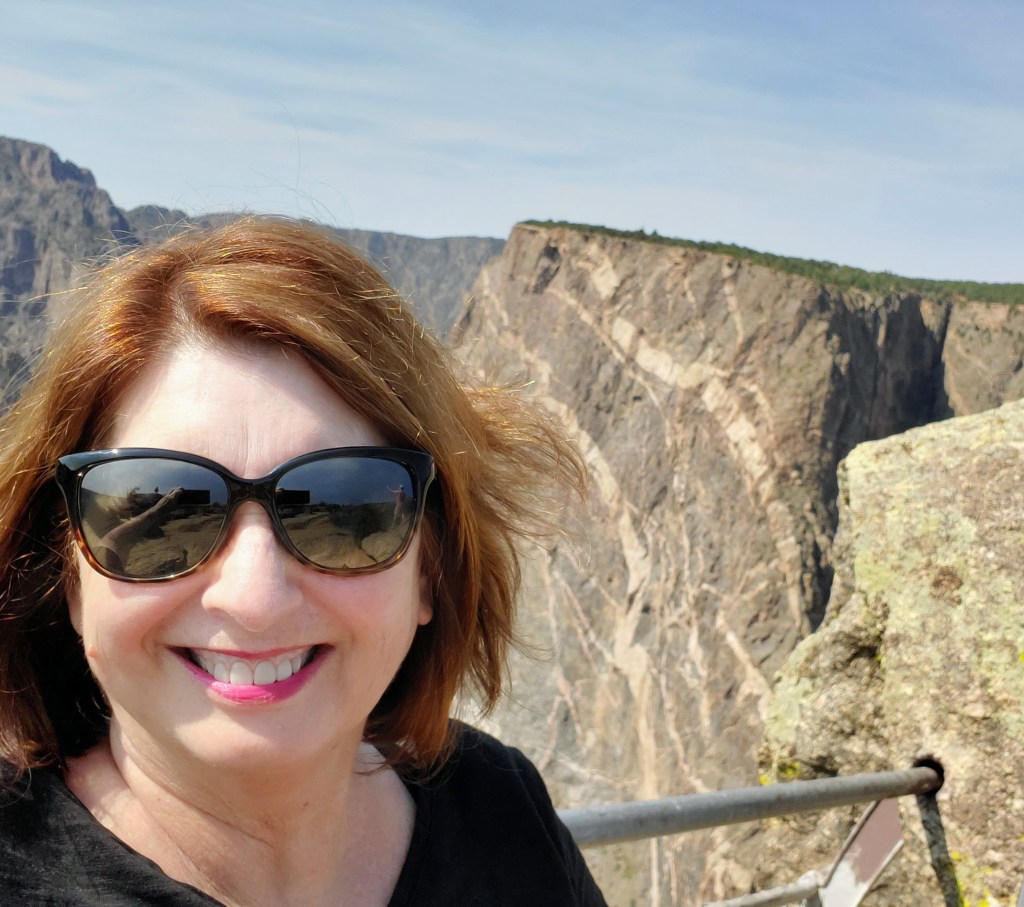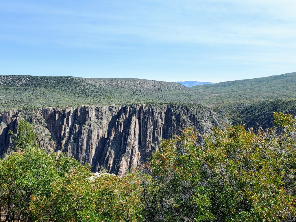 The route through the park along the South Rim Road was easy to drive and well-marked. It allowed us beautiful views of the Black Canyon from many overlooks, most of which only required short walks. I loved seeing all the different landscapes, plants and trees along the way. Hiking there can be as simple as strolling to the various viewpoints and overlooks or as challenging as a 2,700 foot descent down into the inner-canyon to the Gunnison River, which we didn’t do (because we are sane people!).