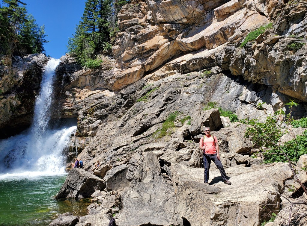 Day #3 – David and I ventured to Two Medicine, a less-popular part of the park that we entered not far from East Glacier that feels off-the-beaten-path. This day actually turned out to be one of our favorites. The drive in had beautiful views and the crowds were sparse. We hiked to Running Eagle Falls, a sacred Native American burial site that celebrates an infamous female warrior and tribal leader. It was easy to feel the spirituality of this place. The double falls were very unusual and we spent quite a bit of time here. We hiked for a bit on a nature trail and soon decided it was lunch time. We drove a short distance to Two Medicine Lake and found a table at the General Store overlooking the picturesque lake with Sinopah Mountain towering in the background. Good food, great views.