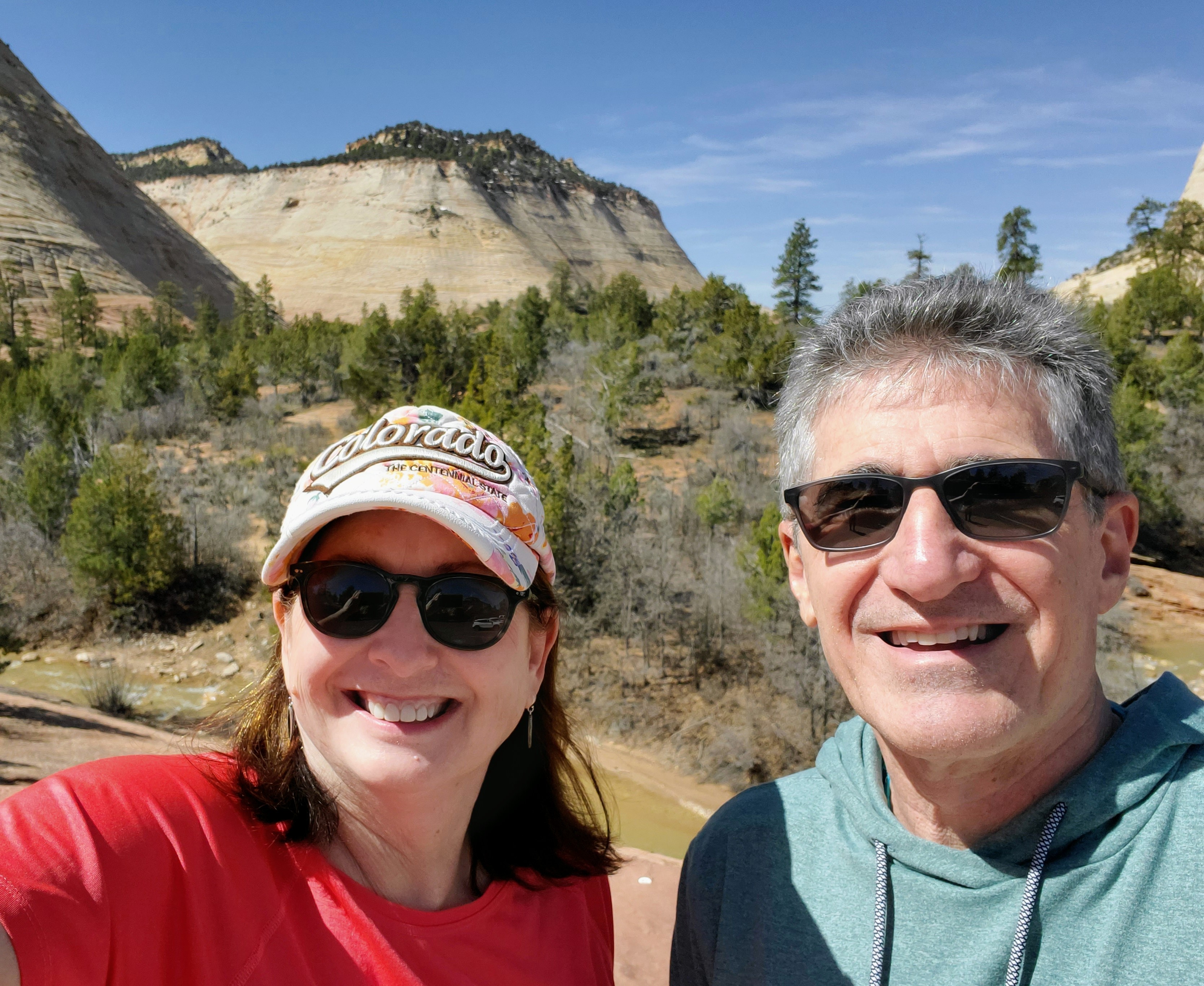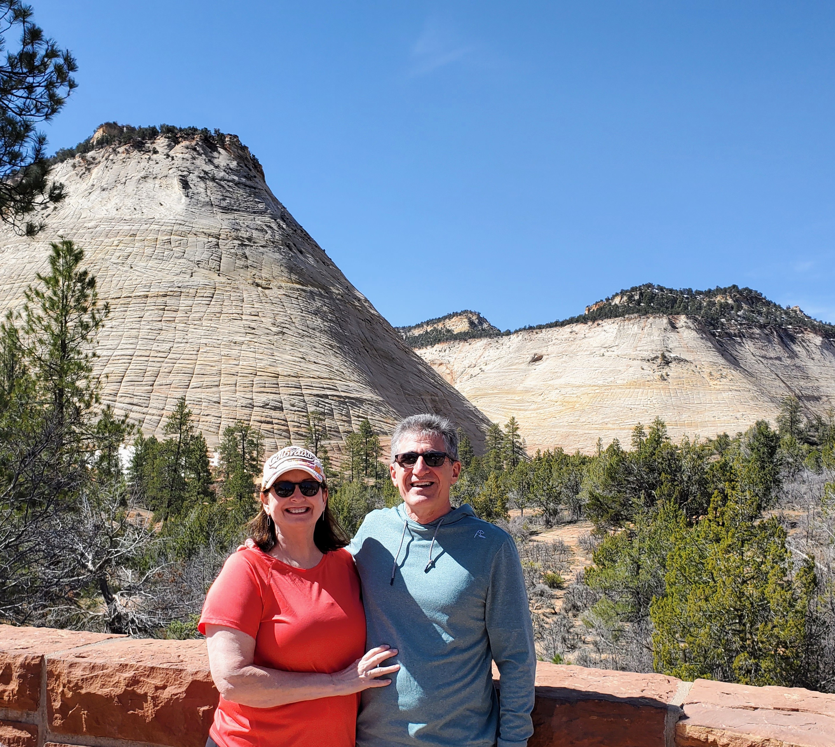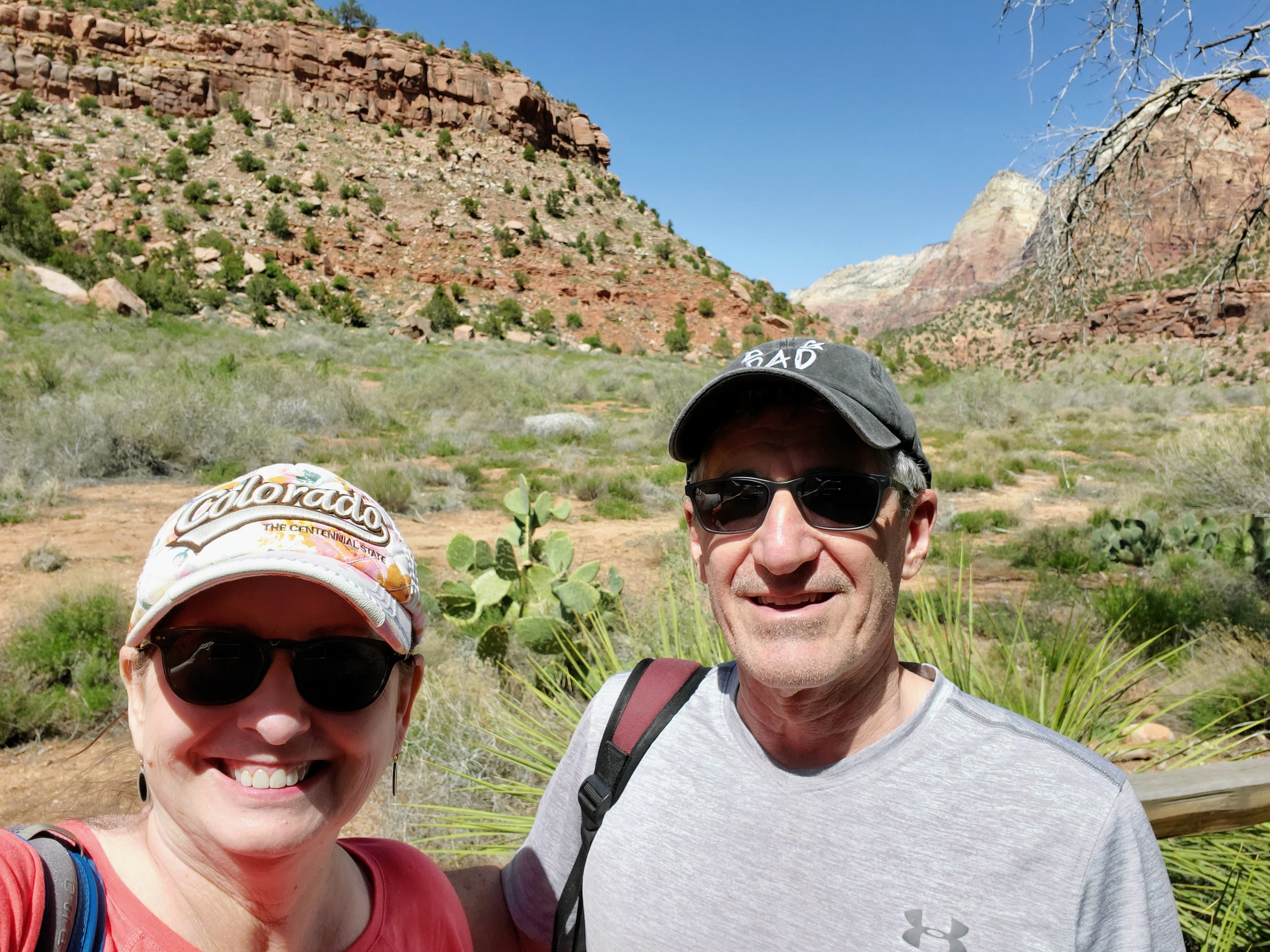David and I entered the park early on our first full day. No lines! We decided to ride the shuttle all the way to the final stop and work our way backwards. We hiked approximately 7 miles the first day and saw many beautiful sights. We hiked paved, sandy, rocky, forested and dirt trails. We saw mule deer, beautiful waterfalls, clear pools, bridges, sandy beaches, ancient trees, mountain ranges and towering cliffs. We ate a leisurely lunch, snacked on ice cream and shopped at The Zion Lodge gift shop. Quite simply, we had the perfect day. We slept like logs that night!