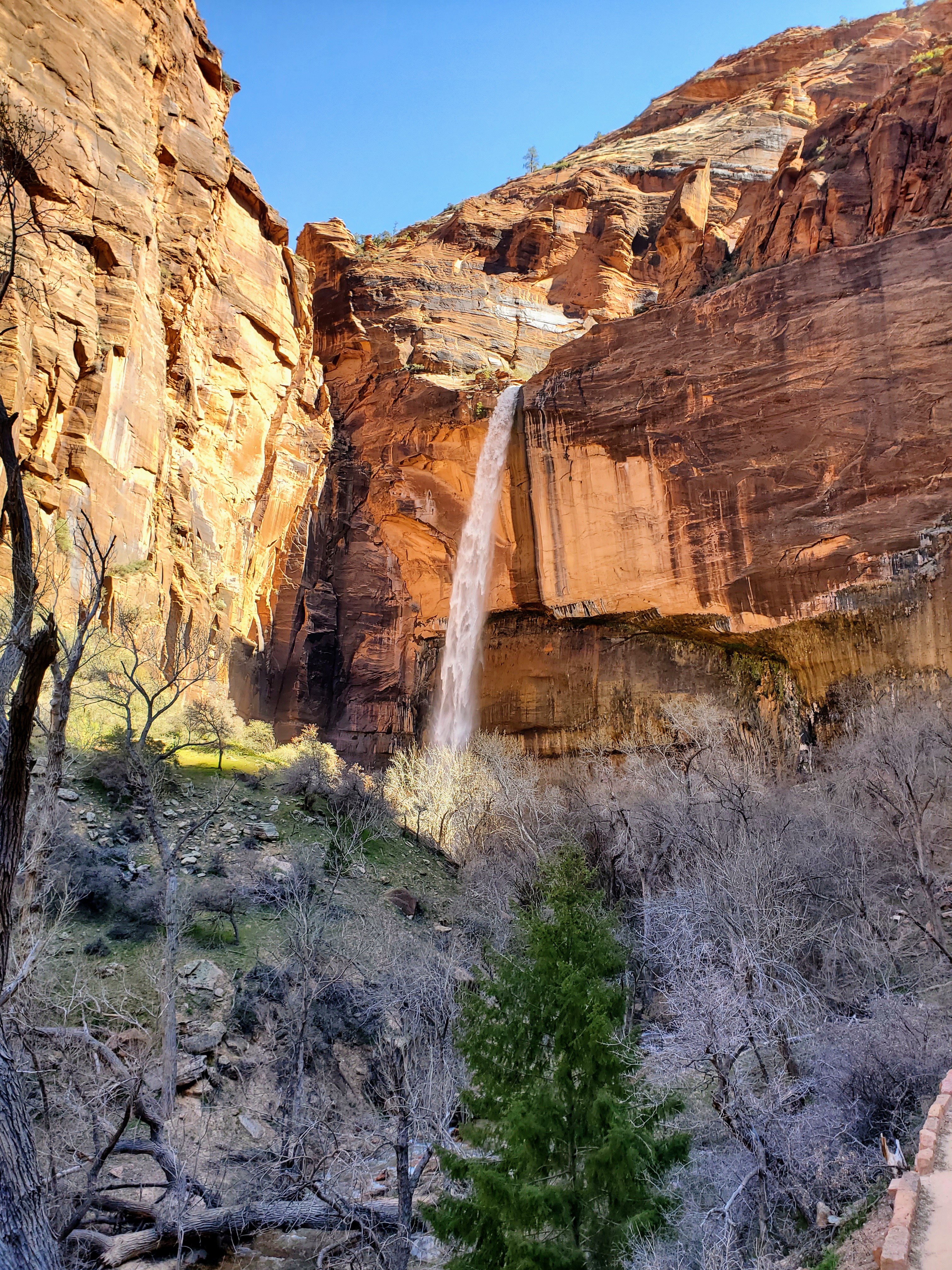 We visited the park in mid-April and the crowds were minimal and the weather was perfect! The temperatures were very pleasant but the water levels were extremely high due to snowmelt and spring rains. The famous Narrows hike through the Virgin River was closed due to the dangerous conditions. Fortunately, these same weather conditions made the waterfalls spectacular! Zion National Park will be its busiest from late April to early October, with summer being the most popular time to visit. Long lines, heavy crowds and the extreme heat may not be ideal for you or your family. Plan accordingly.