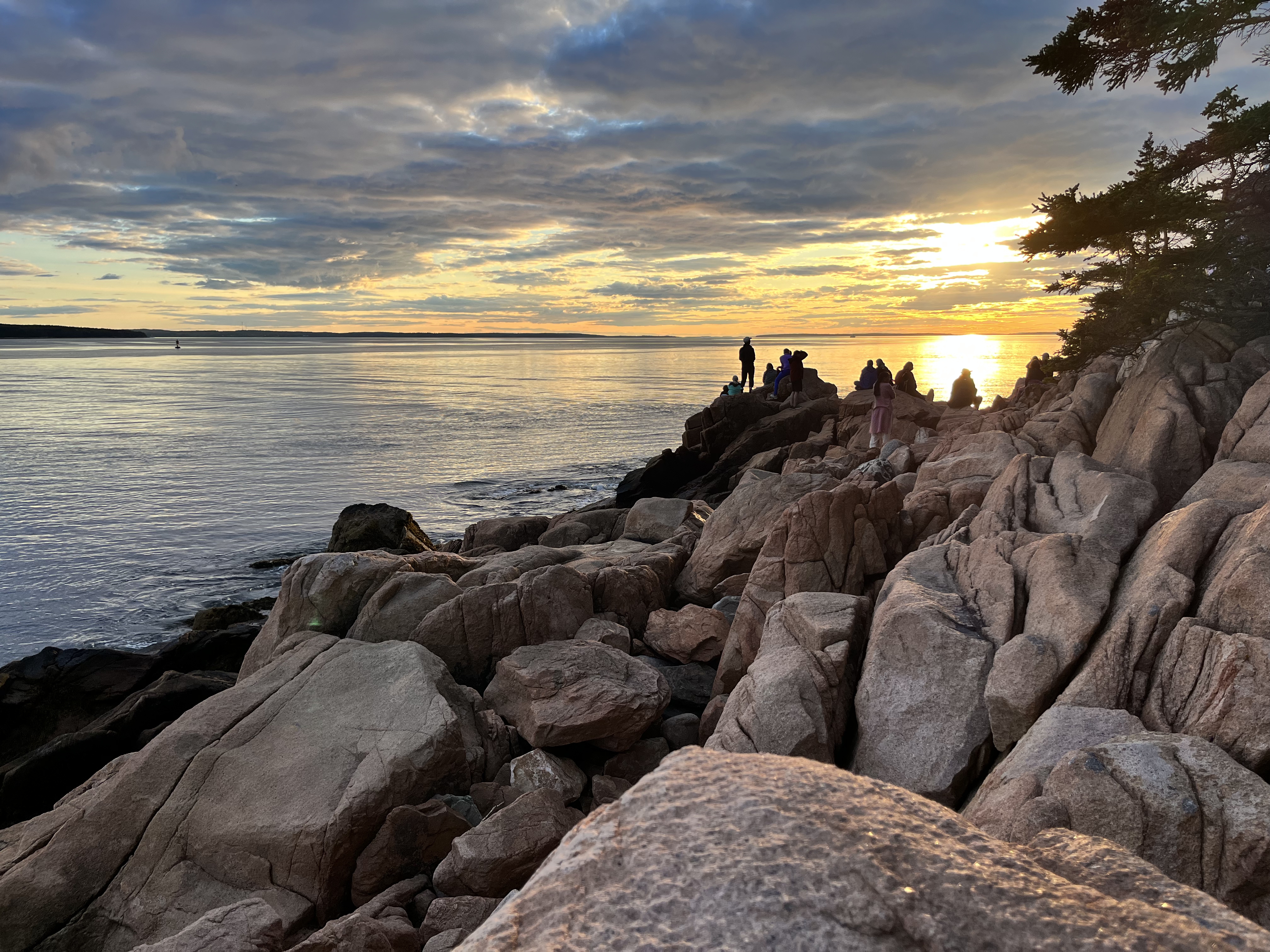 After an afternoon spent relaxing on the rocky shoreline and exploring a couple of beaches, we headed back to Southwest Harbor. After a brief stop at our rental for refreshments, we drove to the Bass Harbor Lighthouse to check it out and get a sunset view photo op. We hiked the short trail and descended a set of stairs before scrambling across granite boulders for the best view. This lighthouse was built in 1858 and is actually more visible from sea than from land. We were lucky enough to see a majestic sunset and got some great pics before heading back to our little home away from home.