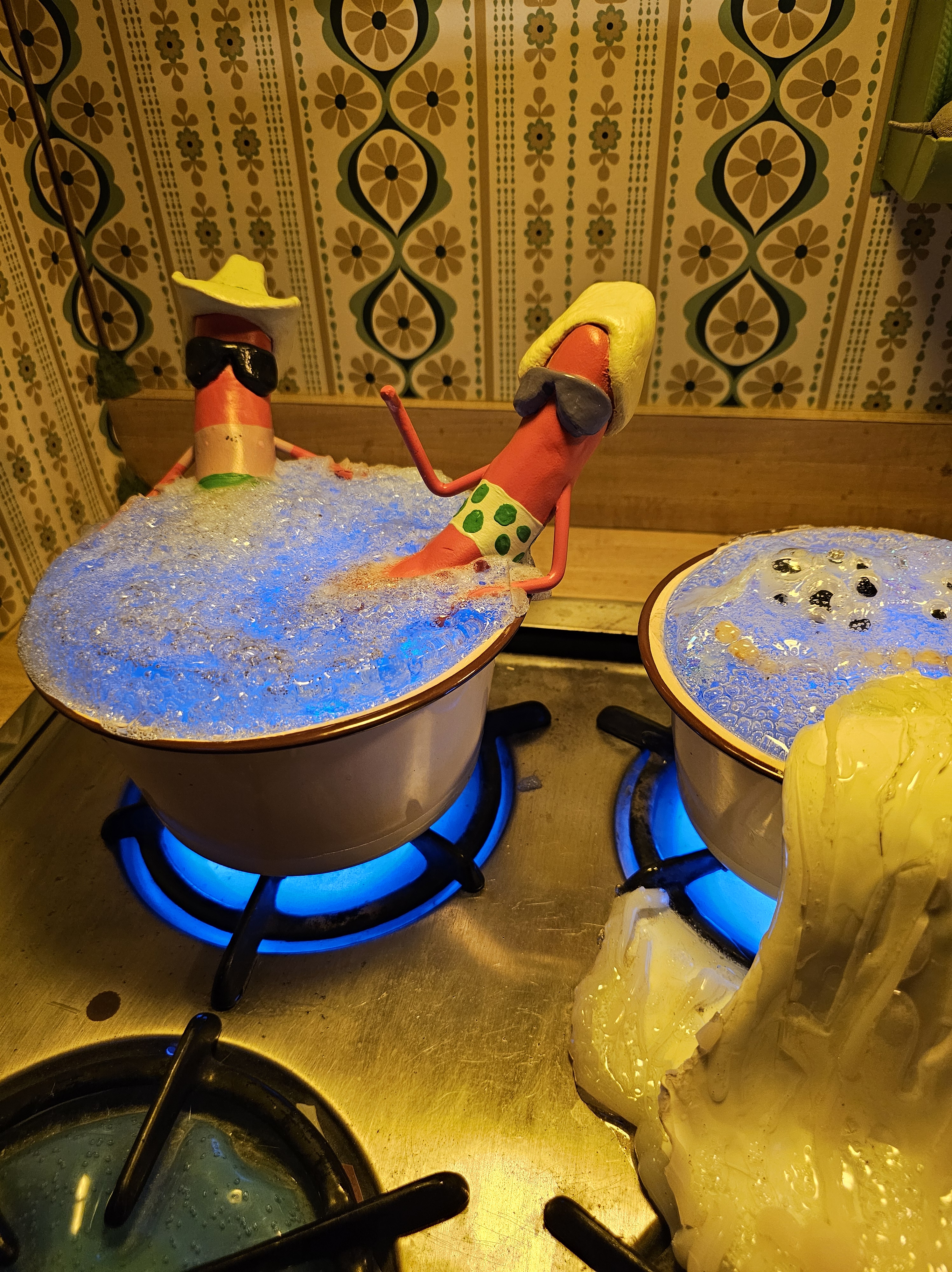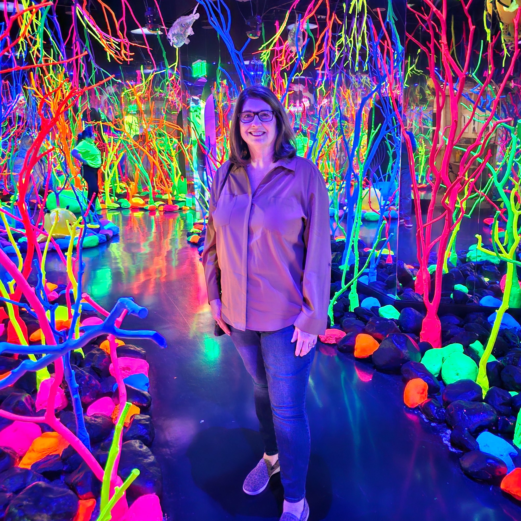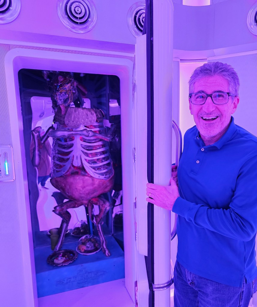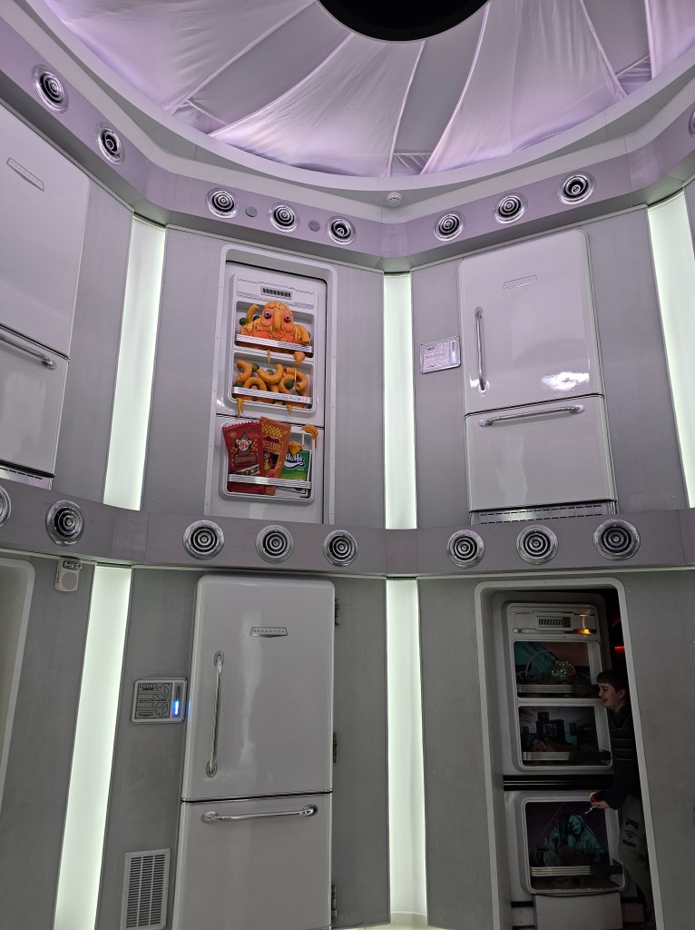 If I delve too deep into explaining Meow Wolf – The Real Unreal, it gives away the whole story/surprise/mystery. Let me just say that it is a sensory overload of sights, sounds, colors, designs, art, lights, tunnels, closets, rooms, refrigerators, slides, music, creatures, aliens, etc. I hope that cleared it up for you!