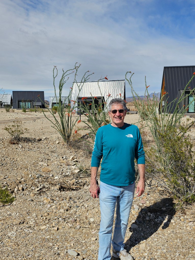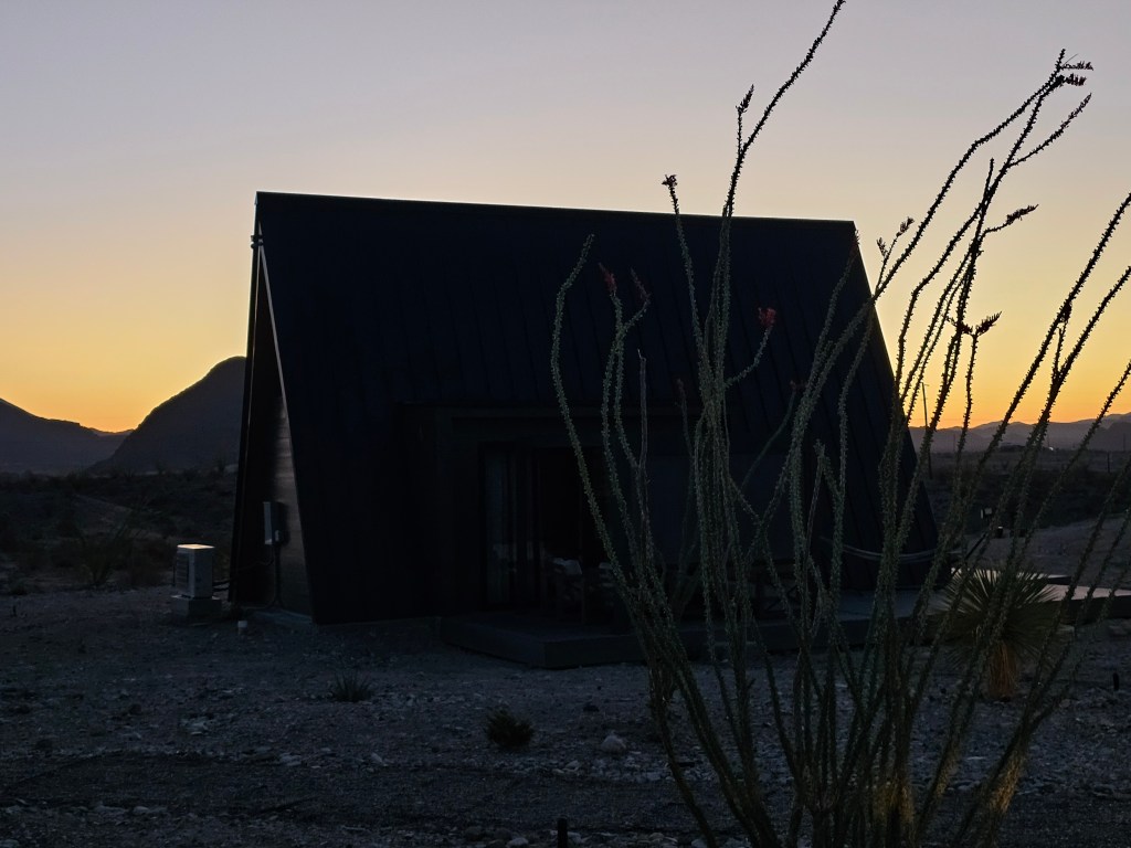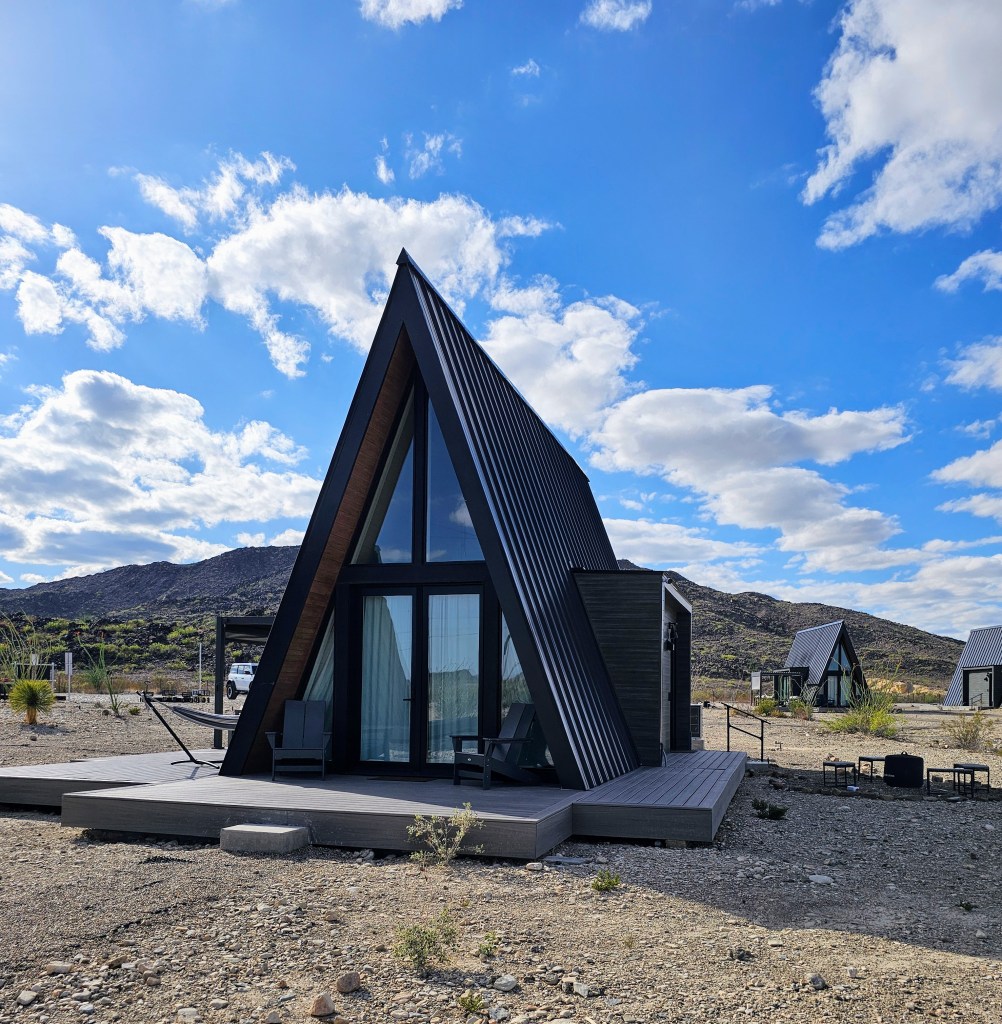 My husband and I stayed in Terlingua, Texas in a cute little luxury A-frame rental (Stardust Big Bend) that was just a few minutes from the park entrance. It was a prefect location for our “home base” and provided all the amenities that we needed. We especially enjoyed relaxing on the covered deck in the late afternoons and watching the dark skies at night from our back porch.