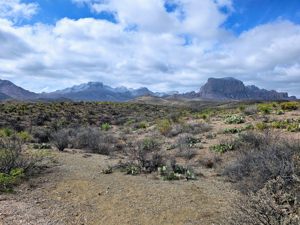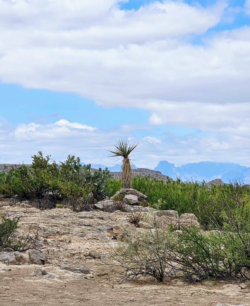 We headed east on the park roads towards the Panther Junction Visitor Center to get our bearings, check maps and closures, and see the exhibits. From there we drove southeast to the Rio Grande Village, the easternmost part of the park. The drive was quite beautiful as morning clouds gave way to clearing skies, allowing the mountains and meadows to come into clear view.