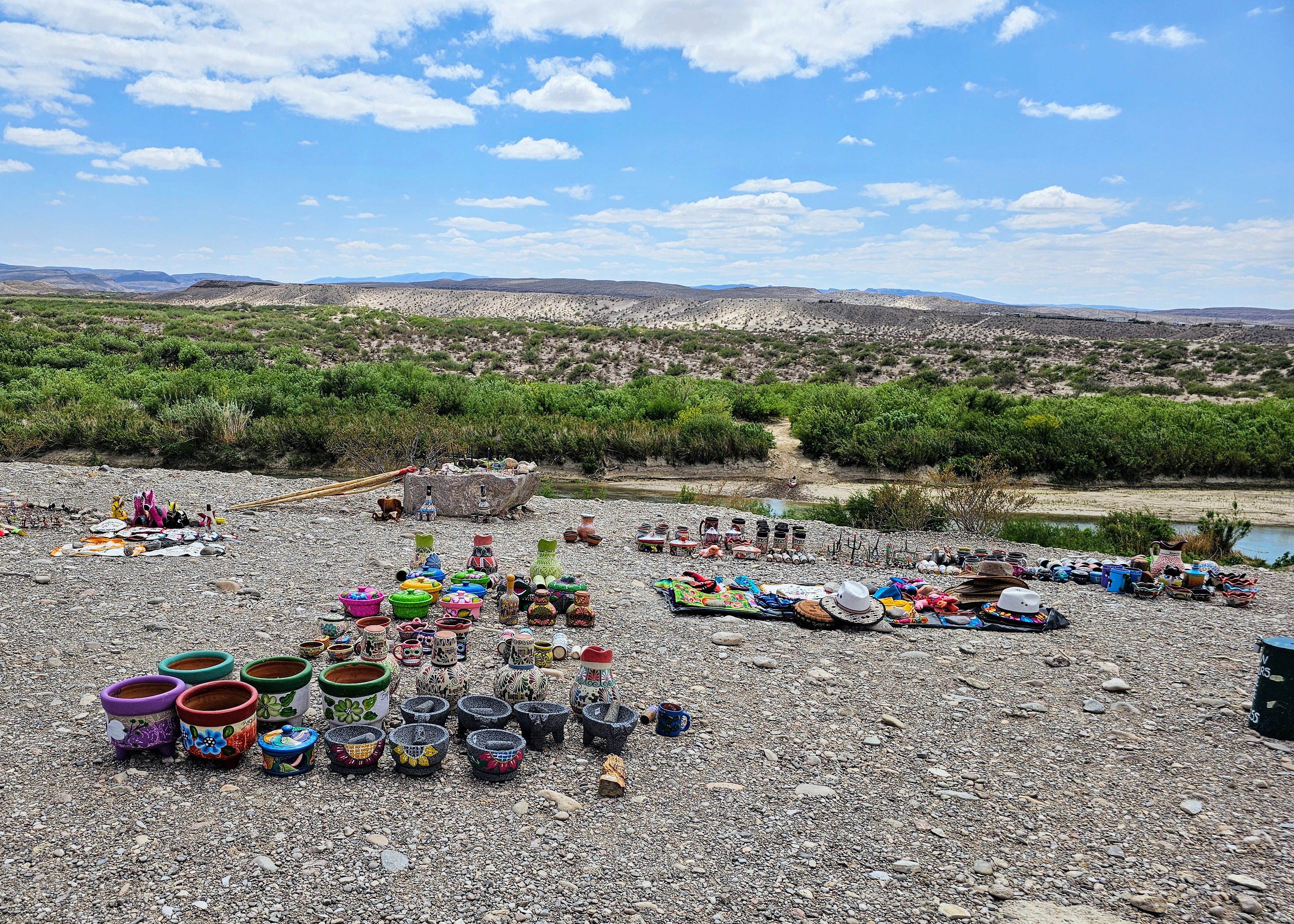 This was the first place we spotted homemade “wares” (pottery, sculptures, fabric pieces, walking sticks, blankets, etc.) for sale. The items were displayed on rocks or boards with handprinted cardboard signs indicating prices and where to leave your money. We kept wondering how, when and by what manner do these people cross the river and set these up? We came across these “little stores” in all areas of the park but never saw any of the actual vendors. My husband read later that items purchased from these spots along the trails can actually be confiscated at the U.S. Border Patrol. Sad, but true.
