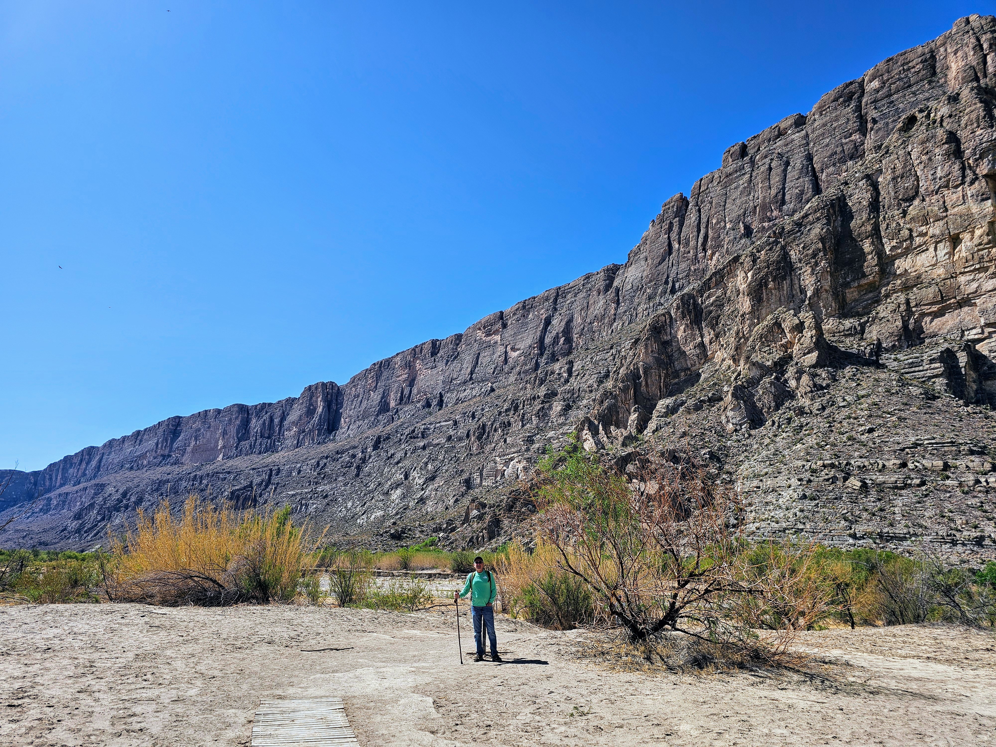 After a picnic lunch back at the visitor center and some much-needed hydration, we were off to hike the Boquillas Canyon Trail located just a few minutes away. There were a few cars in the trailhead parking lot here and we encountered maybe a dozen people on this trail. The trail had quite a few ups and downs before leveling off and following along the river. The path was mostly rock and packed dirt. This ended up being a very pleasant stroll that took us about an hour roundtrip.