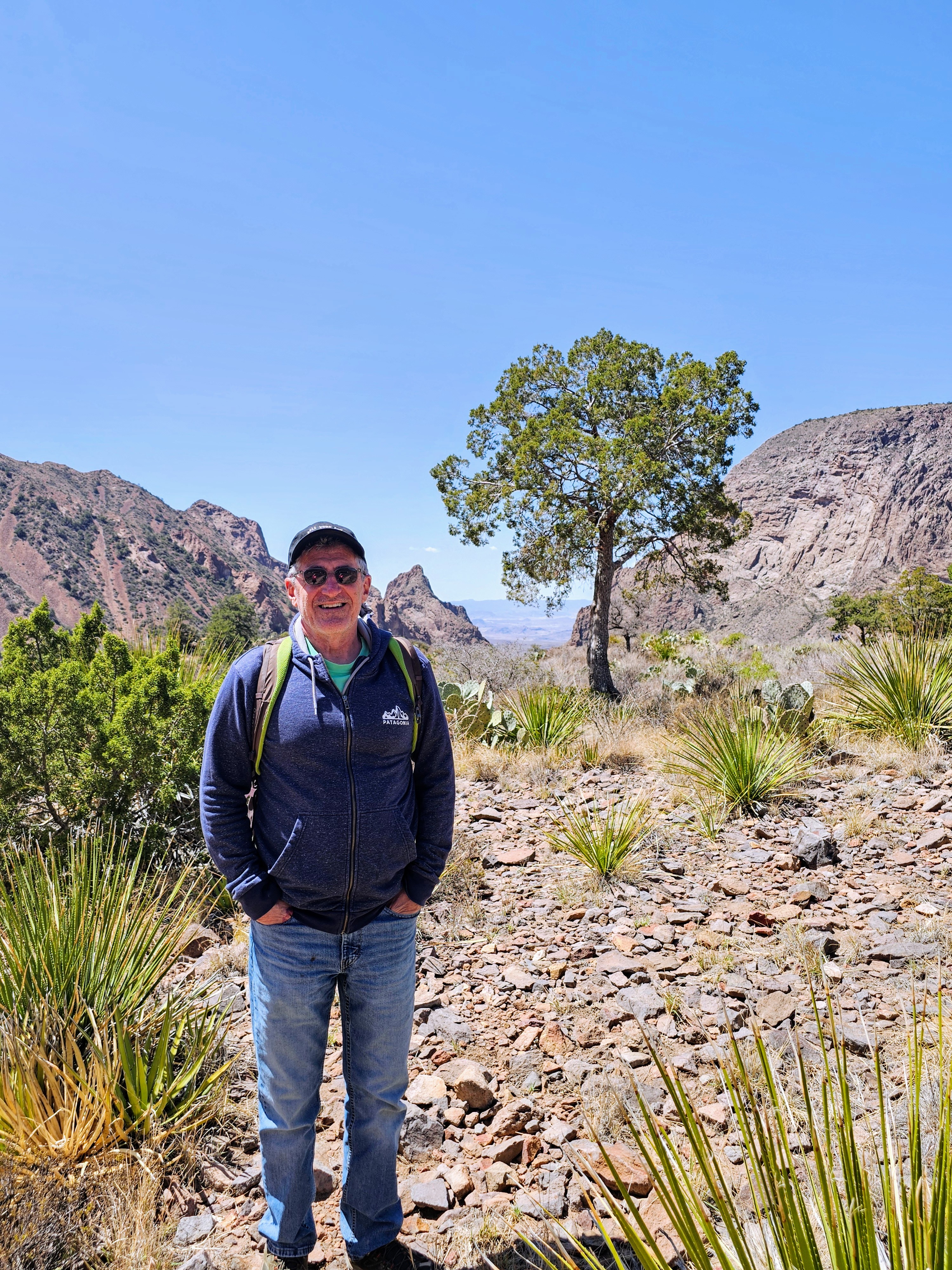 After a picnic lunch near the parking lot, with a curious roadrunner on our table, we headed to the Castalon Visitor Center. We made a brief stop there and then drove onward towards the Chisos Basin. This was located more in the central area of the park and is where most of the park’s mountains and forests are located.