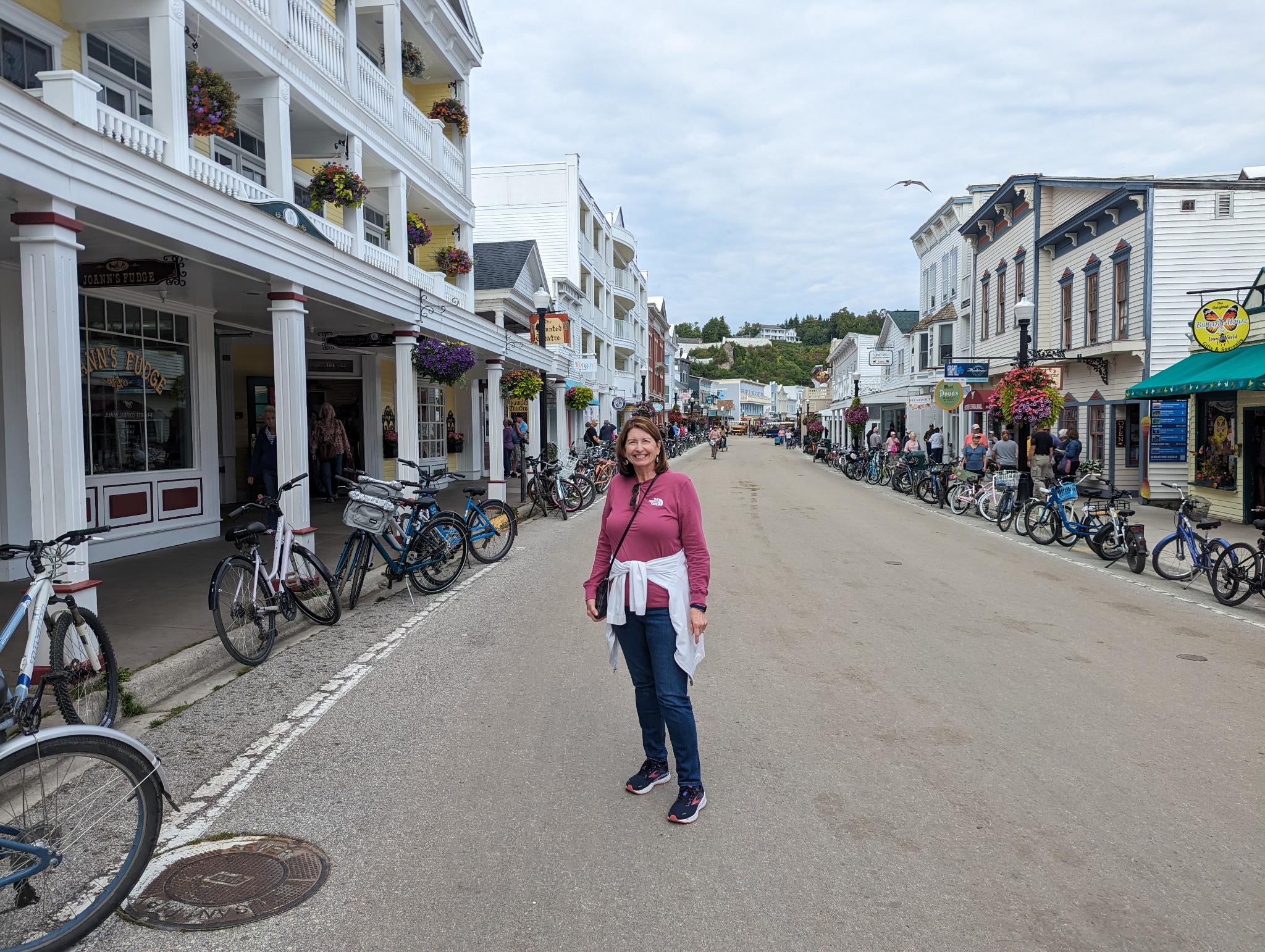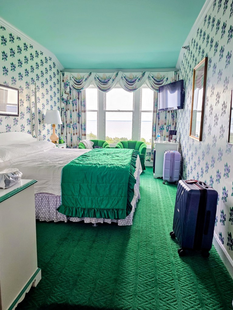 There are two ferry lines that leave from two separate ports. Each one-way trip will take about 15-20 minutes before arriving on the island. The early morning ferries take a swing under the Mackinac Bridge for great viewing of this huge suspension bridge, which is what we did. The ferry then docks near downtown, and from there you can ride in the Grand Hotel’s horse drawn carriage “taxi” or walk to the hotel. Our luggage was tagged when we bought ferry tickets and was delivered to our rooms in the hotel. Easy peasy!