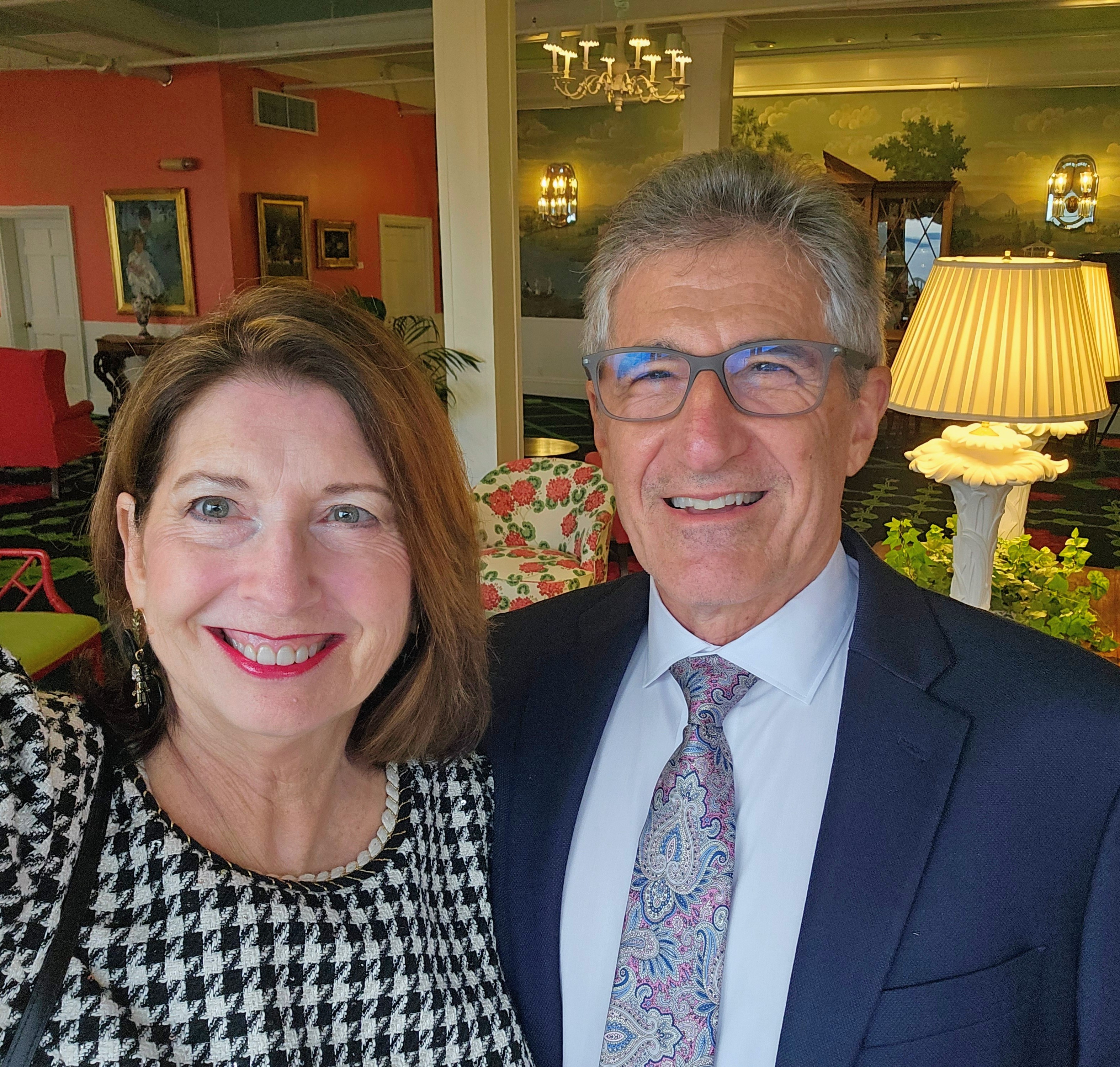 Red carpeted steps led up into the main doors where we checked in for our overnight stay. The interior was just as expected (designed and built during the Gilded Age!). It was over-the-top, decadent, and colorful. Art work, sculptures, carpets, decorative furniture, lighting, flowers, etc. all seemed to be from another time and period. The signature flower of the Grand Hotel is the red geranium, and those colors seemed to be the color inspiration for the formal parlor, dining rooms and adjoining rooms.