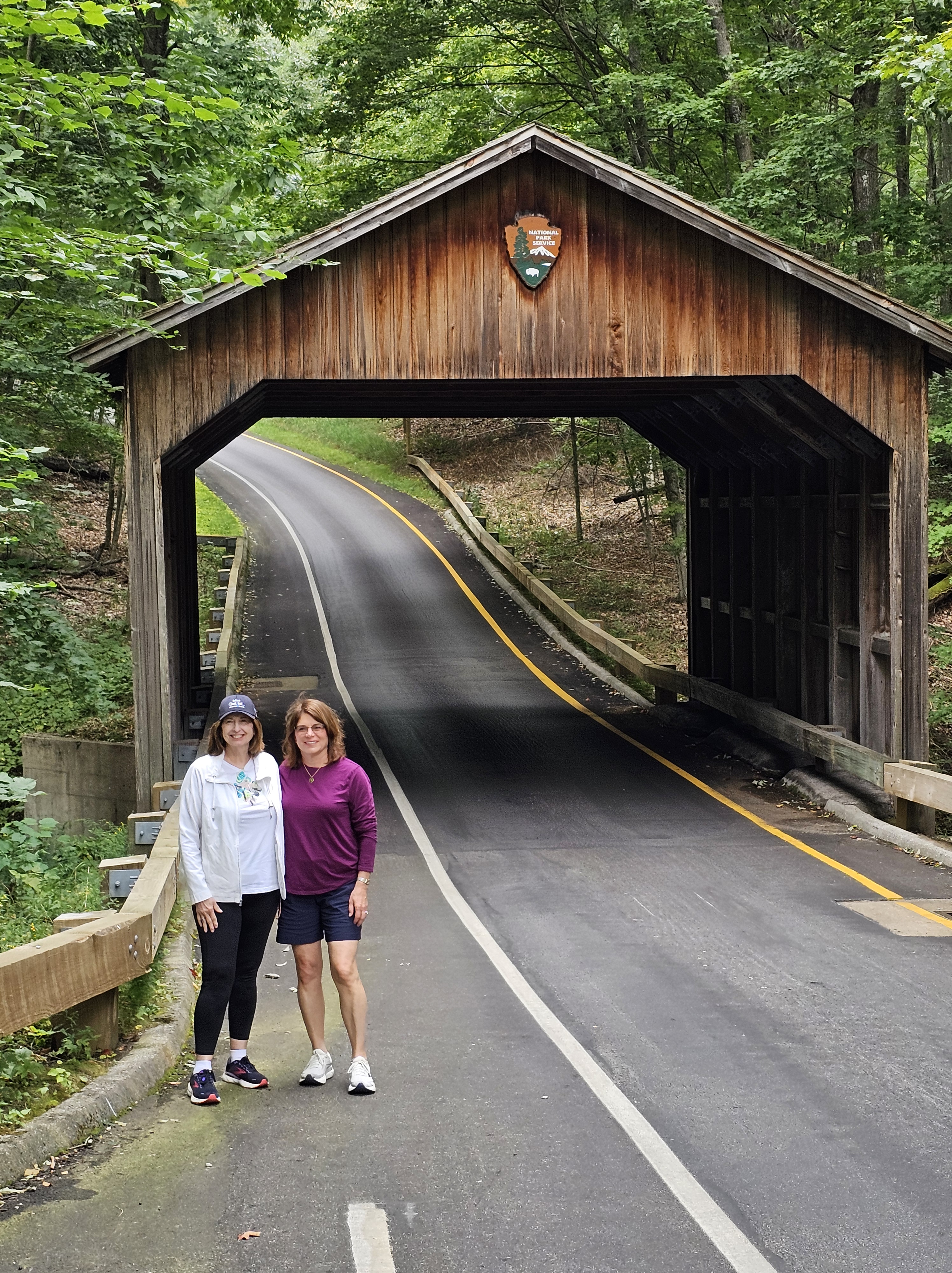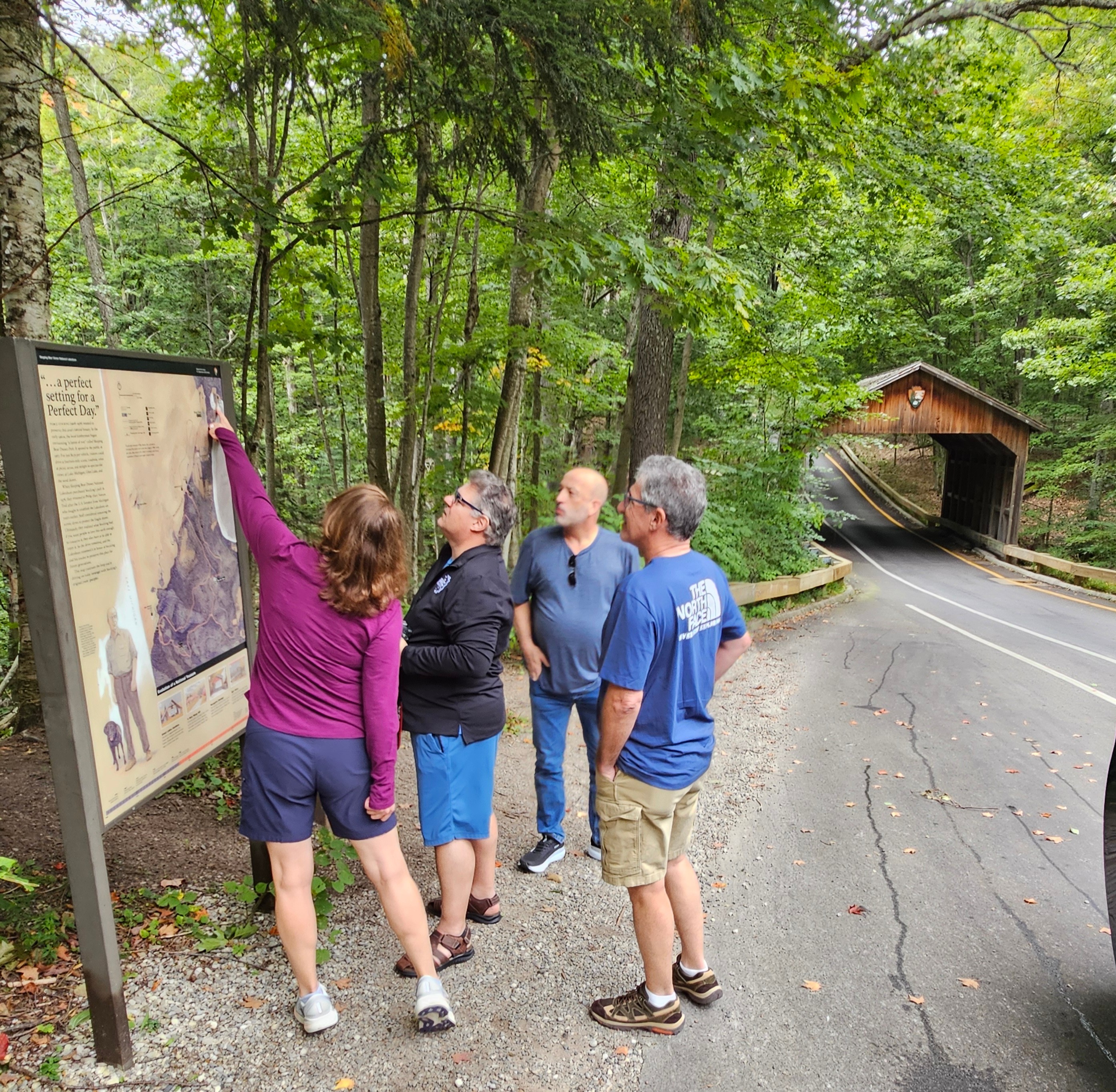 Our group (3 adult couples) began our journey into the park by driving along the Pierce Stocking Scenic Drive. This is a 7.4 mile loop that provides 12 points of interest to stop at along the way, if you so choose. Our first stop was the historic covered bridge for a photo op. This is actually the second covered bridge because the first one was eaten by local porcupines who found the wooden sides to be a tasty treat!