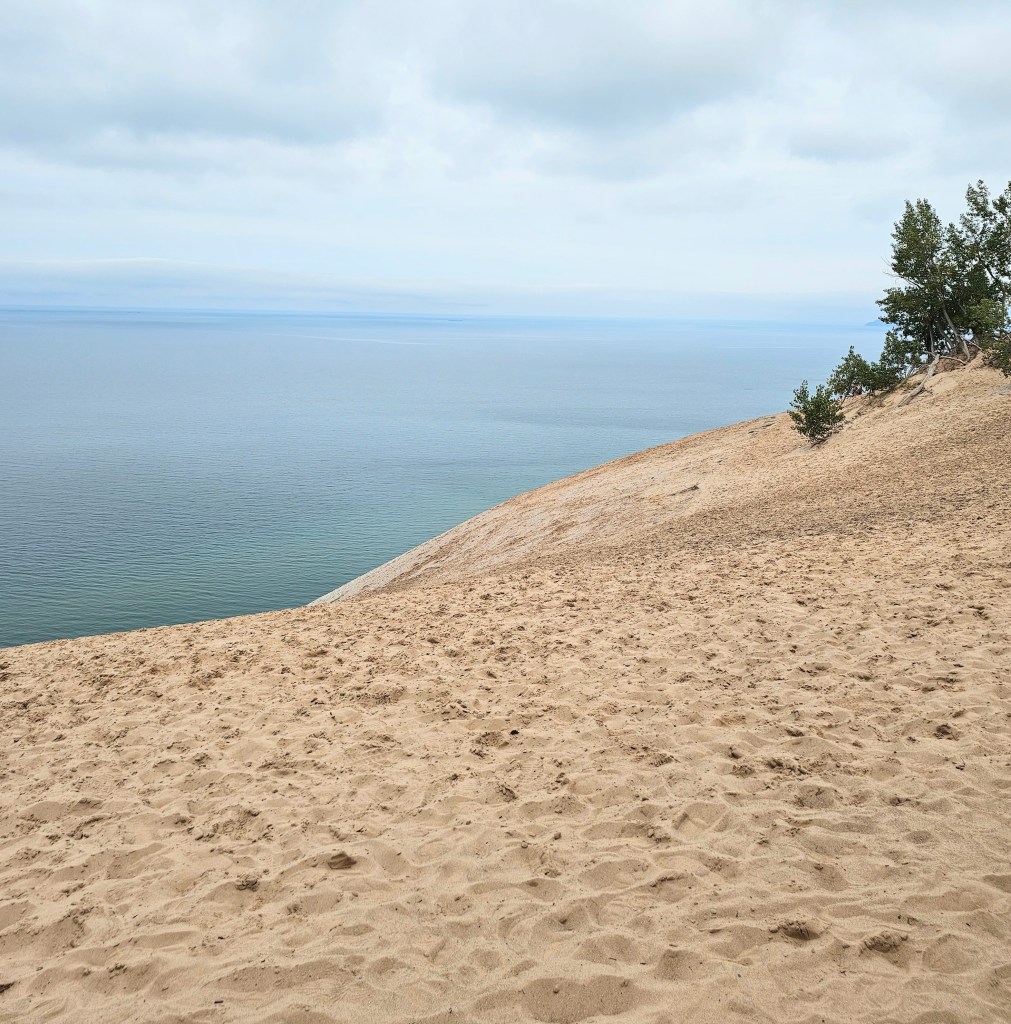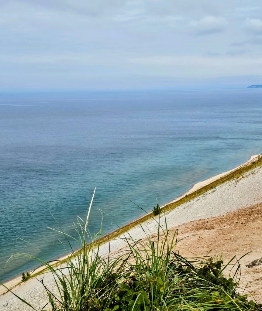 Sniffle. I warned you. Today, the momma bear is seen as one of the big sand dunes and the cubs are seen as North Manitou Island and South Manitou Island, right off the shore. This is not exactly a cheery tale but we did see the story in print as a children’s book.